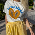 Cotton white t-shirt with cute papaya print