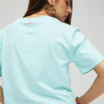 “Escape to paradise with this PARADISE t-shirt. Met het PARADISE t-shirt droom je weg naar het zomerse paradijs. De voorzijde heeft een vorlijke design. Aan de linkerzijkant van het t-shirt zit het subtiele roze merklabel. Op de achterkant, boven de hals staat het logo in paars. De fit van het t-shirt is cropped en de achterkant valt wat langer uit.