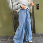 Maxi pants in pinstripe bleu