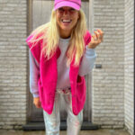 Felice is a sleeveless jacket in the softest teddy fabric. It has big buttons and 2 pockets in the front.