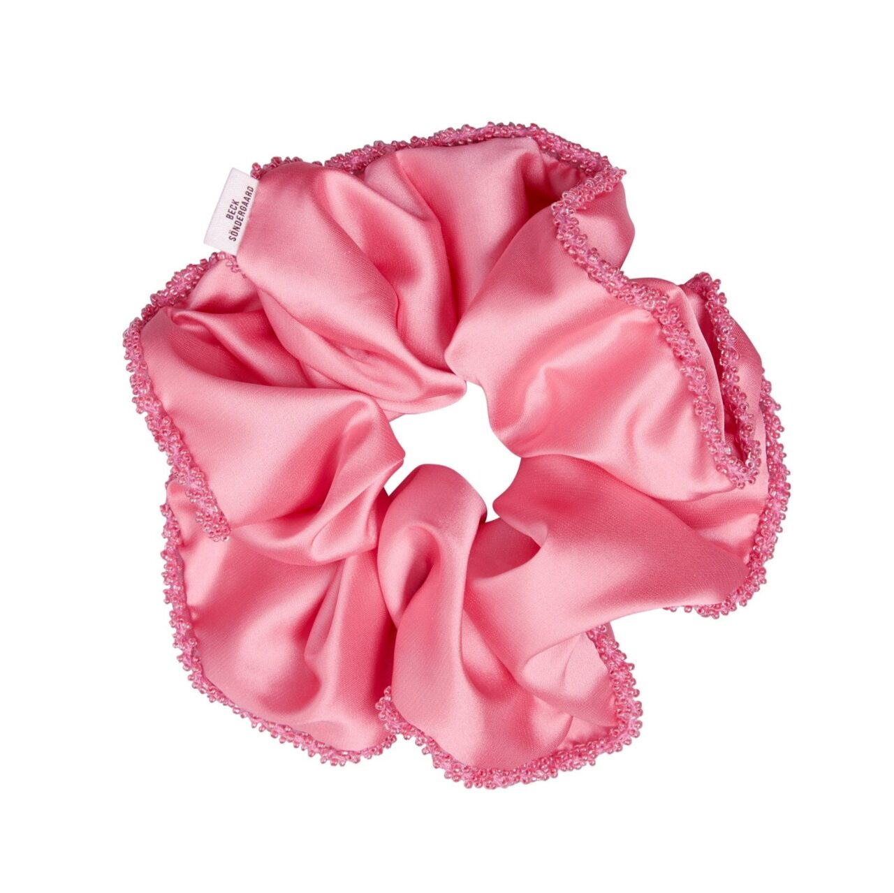 The Luster Bead Scrunchie comes in a beautiful satin edged with delicate beads. Ideal for elevating ponytails, buns, or half-up looks, this versatile accessory complements any outfit.