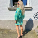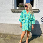Sophie is our newest bestseller. A mini dress with v-neck, long wide sleeves & detail on the front of the skirt.